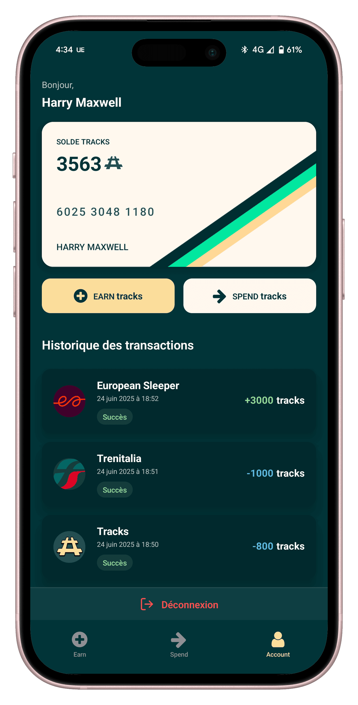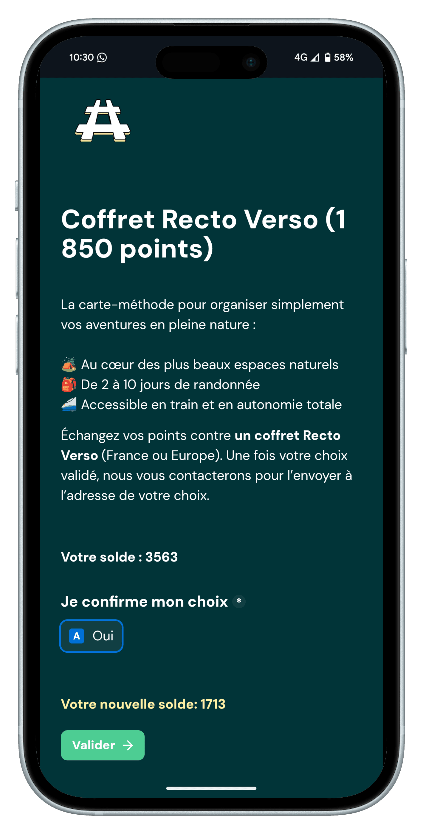 Une fois la transaction validée par le partenaire, vos points sont automatiquement ajoutés à votre compte.